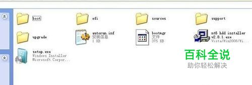 将WIN7的安装包解压出来,一般情况下,你下载的都是ISO格式的镜像,解压出来后会有下图这样的文件