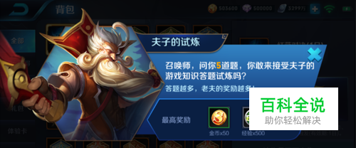 其实“夫子的试炼”玩法还是非常简单的,而且参加之后,你将会得到丰厚的系统奖励,有经验、金币还有道具,是你不可错过的近期活动,具体玩法内容如下: 在新版本中,我们希望通过答题的方式让玩家能够了解到游戏里的常识和更多进阶的知识,所以我们设计了夫子的试炼系统;您可以通过多人PVP模式游戏后结算掉落“夫子的试炼”道具,它将会被放到您的游戏背包里,点击使用该道具便可进行游戏知识答题,完成答题后,将会根据您的游戏状态不同获得对应的奖励。 该“夫子的试炼”道具每天掉落一个,堆叠上限为一个,所以召唤师每天都可以进行答题。当对应的题库答完时,后续将不会再继续掉落该道具。