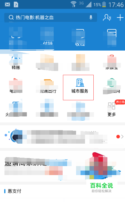 如果在首页没有看到,点击更多,在所有功能里面找到城市服务
