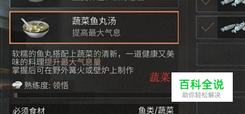 蔬菜鱼丸汤,这个需要鱼和蔬菜即可,如下图所示,可以提升气息量
