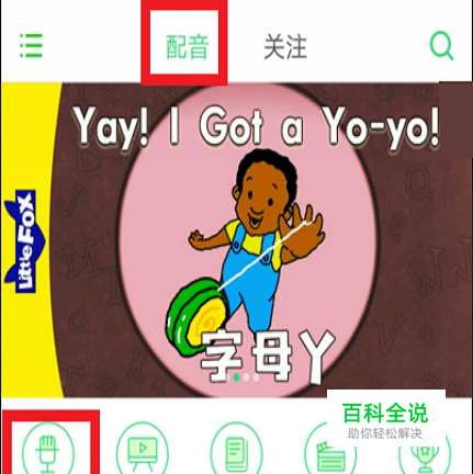 点开趣配音的主界面后,在以上呈出的绿钮有个配音的字样按入,或是点进教材。