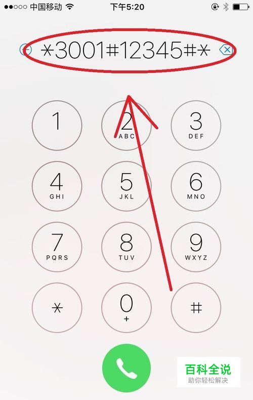 进入电话拨号界面。在拨号键盘上输入“*3001#12345#*”,然后点击底部的绿色拨号键拨打电话: