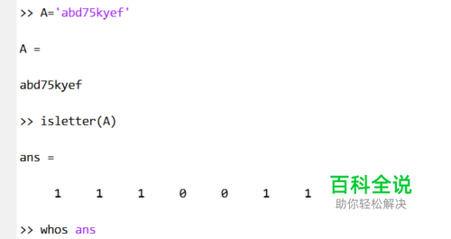 函数isletter可以判断字符是不是字母类型。 可以对字符数组使用,返回等尺寸的逻辑值数组。