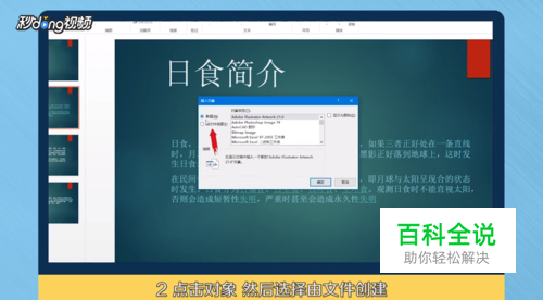 点击“对象”,选择“由文件创建”,再点击“浏览”。