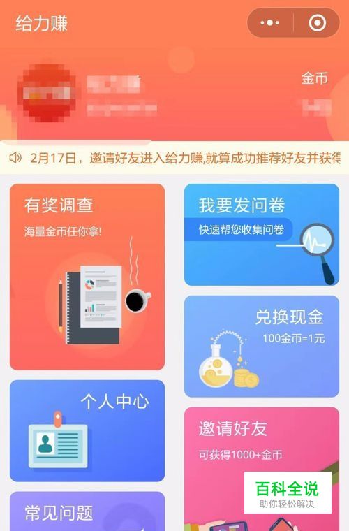 除了参加“有奖调查”赚取金币外,还可以通过邀请好友赚取金币。具体方法是:点击“邀请好友”功能 — “邀请好友”,通过“转发给好友”或“生成分享图”分享给好友,只要好友进入给力赚后,您将会收到系统同步发放的推荐奖励。另外,您的好友每成功完成一份调查,您将会收到百分之二十的提成奖励.具体金币数额可以查看您的“好友贡献”。