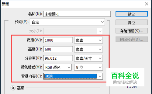弹出的新建画布对话框中可以设置画布的长、款、填充颜色等信息