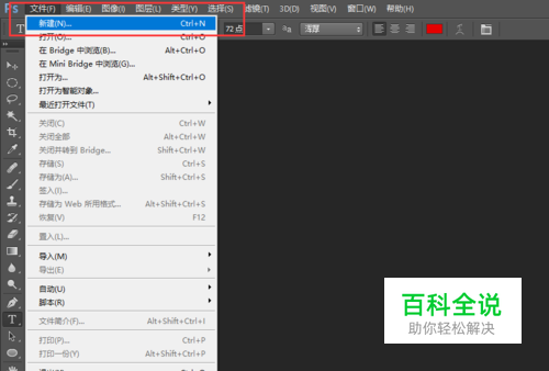 打开PS,选择左上角的【文件】-【新建】来新建画布。