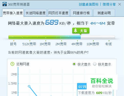 首先我们先测一下网速——选择“测网速”几秒后会显示出你当前的网速大概是多少,如图,小编的大概是四--六兆左右。
