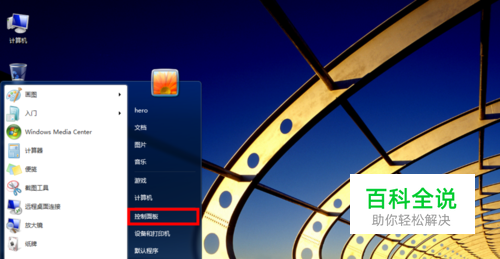 进入win7系统桌面,左下角打开win菜单点击“ 控制面板”。