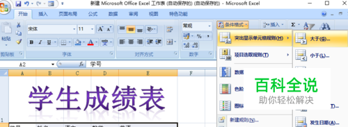 单击开始--样式--条件格式--突出显示单元格规则,选择一个条件如大于