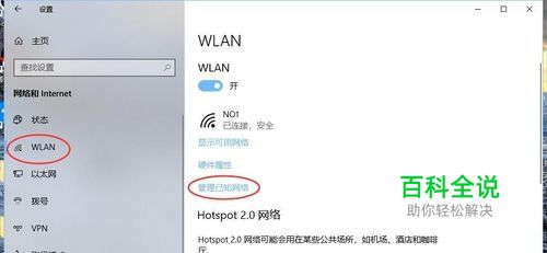如图所示: 点击WLAN选项卡,并选择管理已知网络。