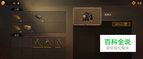 如果不知道该如何制作润滑油之类的,可以点击【制作公式】查看。有材料就移到制作界面左侧的空格里便可开始制作道具。
