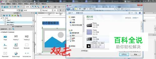 首先布局如图,有一个图片展示组和一个按钮,用来控制动态面板,双击图片可以选择要展示的图片