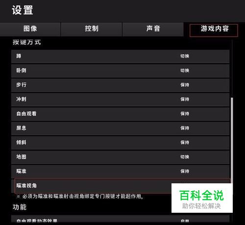 首先我们打开游戏设置--找到游戏内容--瞄准视角从切换改为保持。