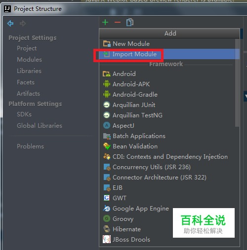 点击file->project structure..->Modules 点击右上角+加号 -》import Modules