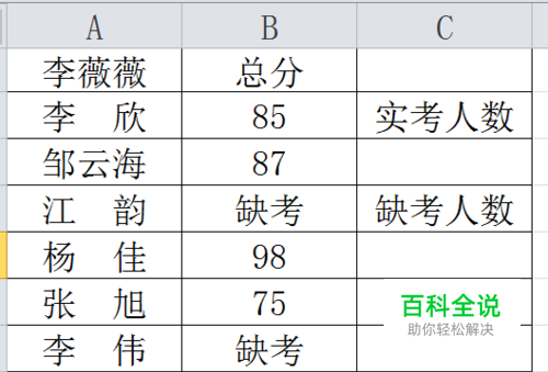 在学校里考试结束后都需要进行数据分析,其中一项重要指标就是缺考人数和实考人数这里给大家介绍函数法来实现快速统计。