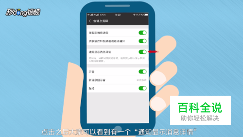 通知显示消息详情,点击关闭,后面的选择框让其显示白色,这就表明微信内容已经不会在手机上显示。