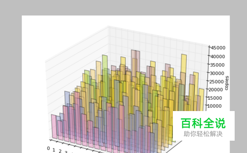 绘制3D柱状图,其数据格式为,二维数组或三维数组。 from numpy import * file=open('C:\\Users\\jyjh\\Desktop\\count.txt','r') arr=[] for i in file.readlines(): temp=[] for j in i.strip().split('\t'): temp.append(float(j)) arr.append(temp) import random import numpy as np import matplotlib as mpl import matplotlib.pyplot as plt from mpl_toolkits.mplot3d import Axes3D mpl.rcParams['font.size']=10 fig=plt.figure() ax=fig.add_subplot(111,projection='3d') xs=range(len(arr)) ys=range(len(arr[0])) for z in range(len(arr)): xs=range(len(arr)) ys=arr[z] color=plt.cm.Set2(random.choice(range(plt.cm.Set2.N))) ax.bar(xs,ys,zs=z,zdir='y',color=color,alpha=0.5) ax.xaxis.set_major_locator(mpl.ticker.FixedLocator(xs)) ax.yaxis.set_major_locator(mpl.ticker.FixedLocator(ys)) ax.set_xlabel('x') ax.set_ylabel('y') ax.set_zlabel('copies') plt.show() 通过设置xs,ys,z可以设定绘制不同维度的数据。