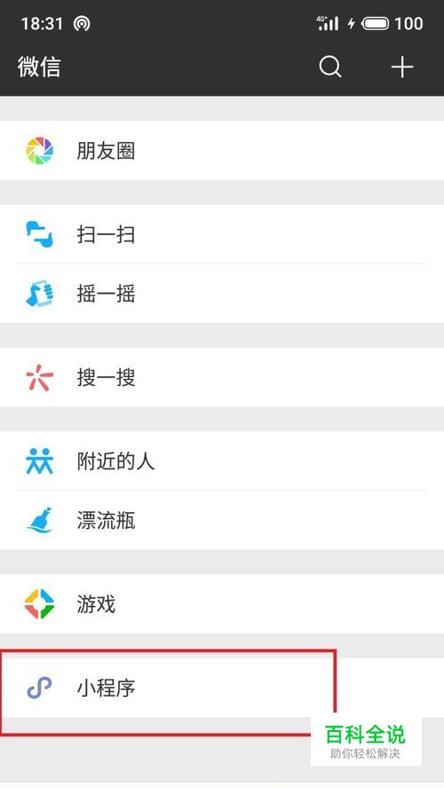 然后在向下滑动找到“小程序”按钮,进入其中,在界面右上角搜索“腾讯客服”。