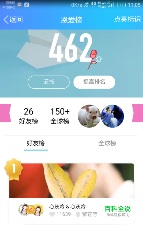 进入排行榜之后我们会看到自己的亲密度排名,然后点击提升排名