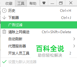 在浏览器工具页面中,找到相关的设置功能,然后对我们的浏览器完成工具拦截设置。