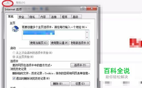 还是打开一个网页,通过点击菜单栏里面的工具项,找到下面的“Internet选项”,点击后打开。