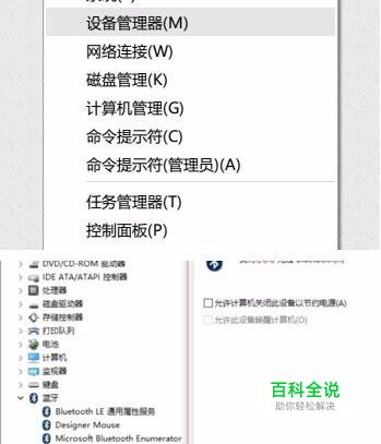 右键单击屏幕左下角的Win图标>点击进入“设备管理器”>双击蓝牙图标来展开子目录>双击打开每一个子项,如果新出现的对话框中有“电源管理”的选项卡,就反选“允许计算机关闭此设备以节约电源”的选项,再点击确定。
