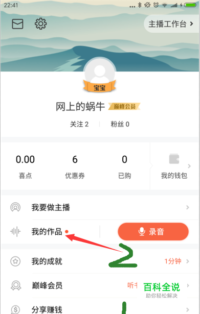 打开喜马拉雅FM的APP,并登录自己的账号,登录成功后选择进入我的页面,然后选择“我的作品”