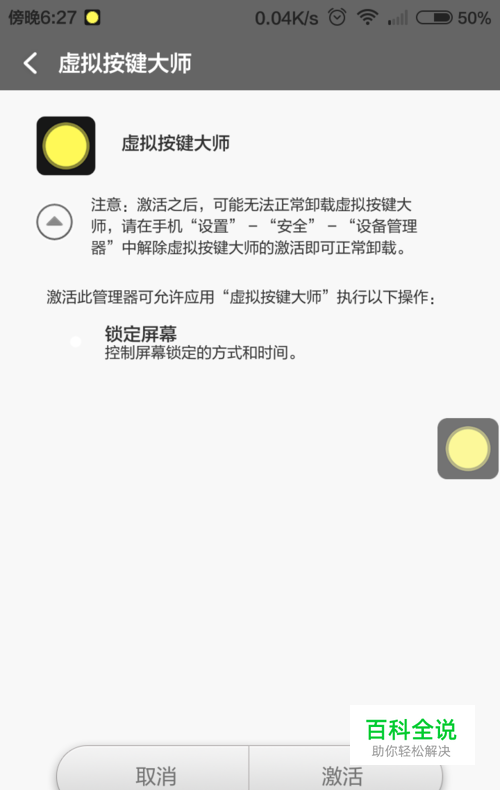 对于MIUI用户如果使用虚拟按键大师锁屏,需激活管理器,软件会自行提示