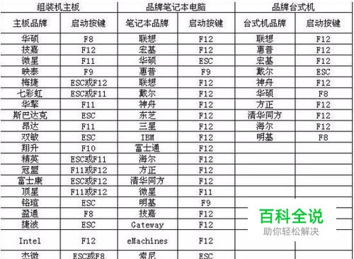 u盘装系统快捷键