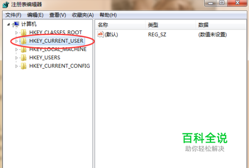 第二步:进入您的注册列表管理器“regedit",找到文件夹”HKEY-CURRENT-USER“选项