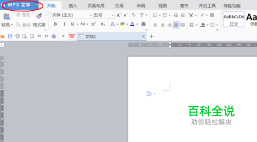 启动WPS文字程序,点击选择界面左上角的【WPS文字】选项。(如图所示)