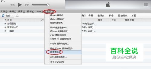 在PC电脑上:Windows 7、Windows Vista 或 Windows XP 这里以 iTunes 11 为例。打开 iTunes,然后按键盘上的“ ALT”键。然后在软件上访弹出的菜单中点击“ 帮助”,选择“ 检查更新”,如下图所示 如果检查后,发现更新,请先升级 iTunes到最新版本。建议升级完成后重新启动电脑 注:如果您使用的是 64 位版本的 Windows 7,请确保下载 64 位版本的 iTunes。