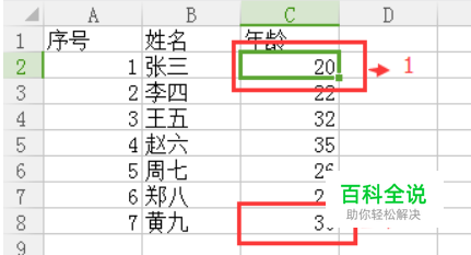 先选中图中1的数据单元格,按住shift键,然后鼠标点击图中2的数据单元格,这样就可以把C2-C8数据都选中
