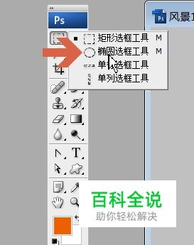 根据要设置模糊的图片情况,在工具菜单中点选一个选框形状。
