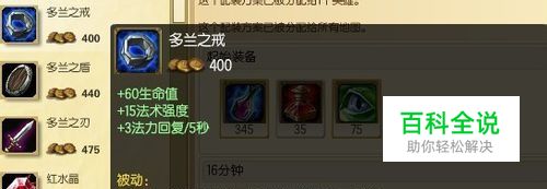 购买多兰进行过度: 第一次回家,可以补给多兰戒,当然法强书也是不错的(后期可以合成较多的提莫需要的后期物品,比如冰仗和大面具等等)