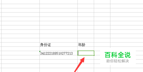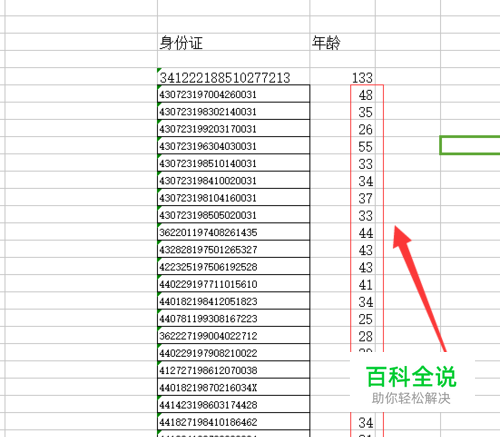 在身份证信息的后方选择一个单元格,标记年龄,然后选择这个单元格如图所示。