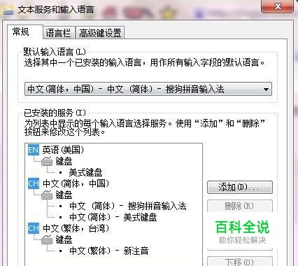 此时会出现文本服务于输入语言框,如下图所示,在这里我们能够看到所有我们电脑上的输入法。