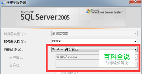 在身份验证中选择——“Windows身份验证 ”,然后点击——“连接”。