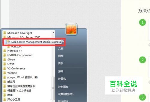 点击“开始”菜单,单击打开——“所有程序”,在下拉选线中找到——“Microsoft SQL Server 2005”,单击打开——“SQL Server Management Studio Express”。