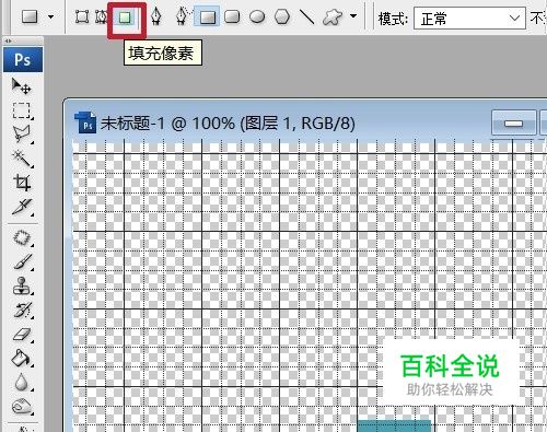 视图里调出网格、智能参考线,U键调出矩形工具,选择填充像素,在文档中拉出一个矩形。