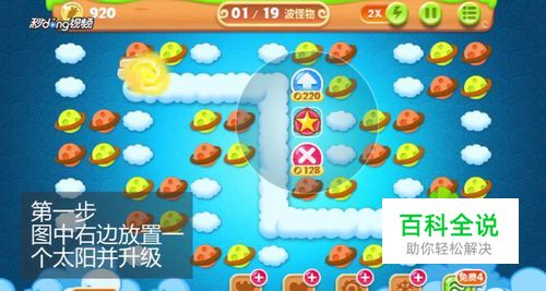 在游戏画面的右边放置一个太阳并升级。