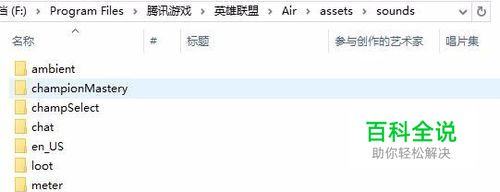 下载好之后,先是把英雄选定界面时候的配音给更换过来。如图所示,将 ”英雄联盟\Air\assets\sounds\zh_CN“ 目录下面的文件替换成日语包中的文件。