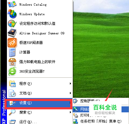 从开始处的设置项中打开“网络连接”