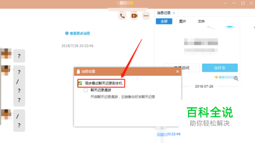 使用qq电脑版同步恢复聊天记录 我们在电脑上登入qq,然后打开被误删聊天记录的好友聊天框!之后我们能看到如下图所示:根据提示,点击右下角的钟表图标,之后进入聊天记录设置选择!