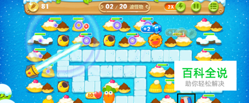 蛋糕清理完,迅速建立一个太阳,瞄准左侧的“雪石头”攻击。