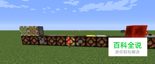 除了活塞和粘性活塞这两样在步骤1中出现的物品其他都可以激活红石 此处用拉杆举例 大家看到了 红石并不是一个点 而是变成了线 在这个线中 只有这个线的顶端触碰的方块会被激活 然而拉杆旁边亮的两个红石灯是由于拉杆的作用