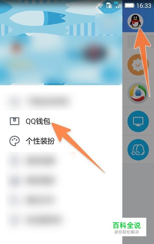 先打开手机QQ,再点击左上角的用户QQ头像,然后在左侧弹出的面板中,点击QQ钱包。