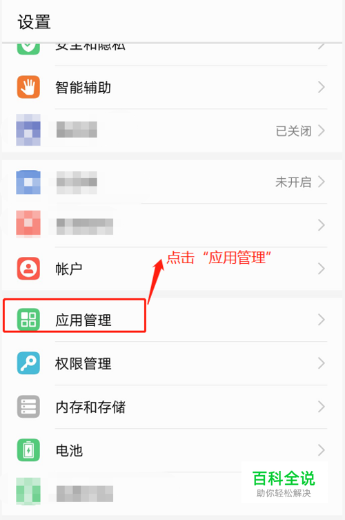 在“设置”窗口中,找到“应用管理”选项并点击它。
