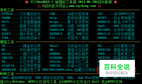 3、如果以上办法都无法解决问题时,电脑硬盘可能存在坏道,导致安装时过不去,此时,我们可以通过u启动u盘的maxdos9.3工具箱中的scandisk 磁盘扫描修复工具,进行硬盘修复,如下图所示: